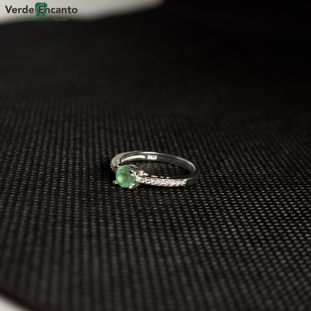 ✨Anillo Clásico en Plata Ley 925 con Esmeralda Natural y Zircones (Aro Delgado)