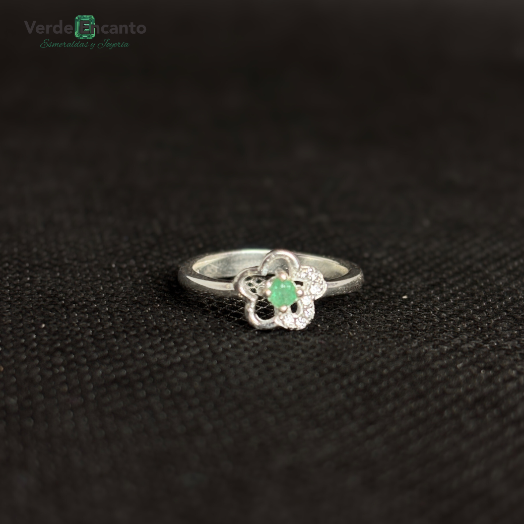 ✨Anillo Floral en Plata con Esmeralda Natural
