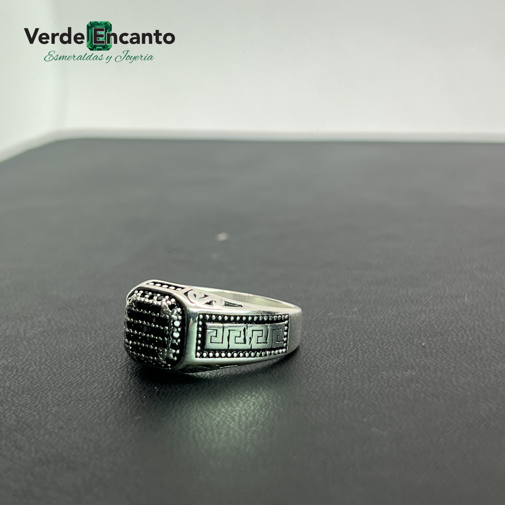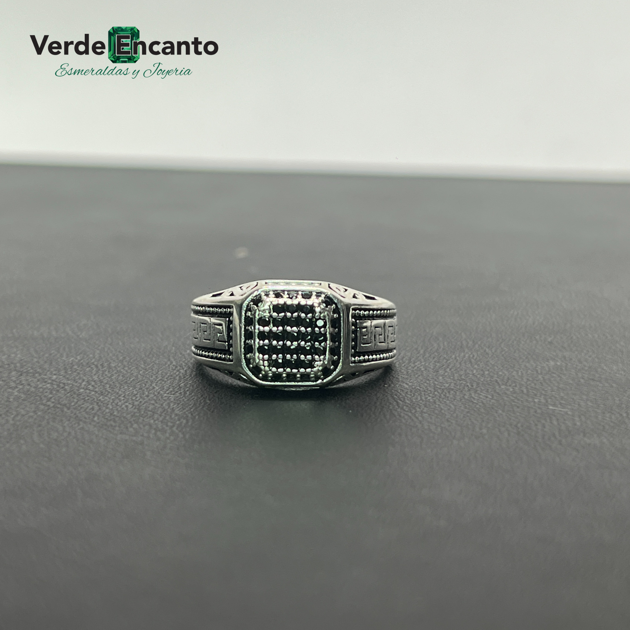 ✨Anillo Plata Ley 925 masculino con diseño geométrico y pavé oscuro
