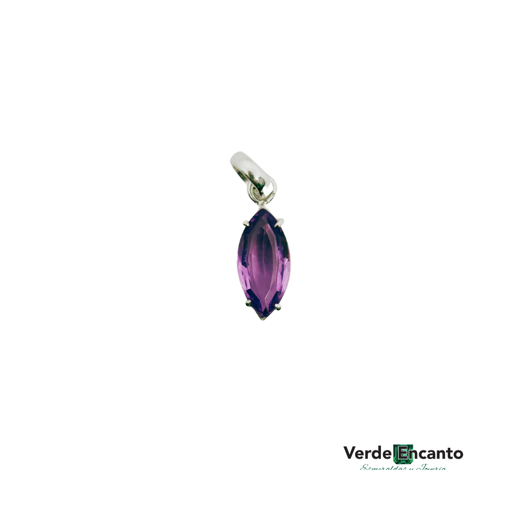 Dije delicado en forma de gota, elaborado en plata ley 925, con piedra natural color morado. Ideal para quienes buscan una joya elegante, minimalista y con energía natural.