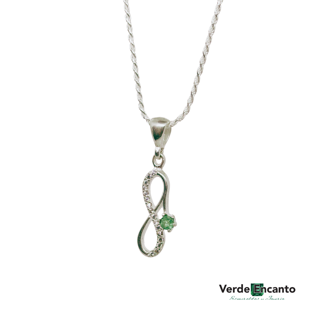 con envíoDije con símbolo infinito, representando amor eterno y conexión infinita, adornado con una esmeralda natural que realza su significado y belleza. Un diseño moderno con valor simbólico.