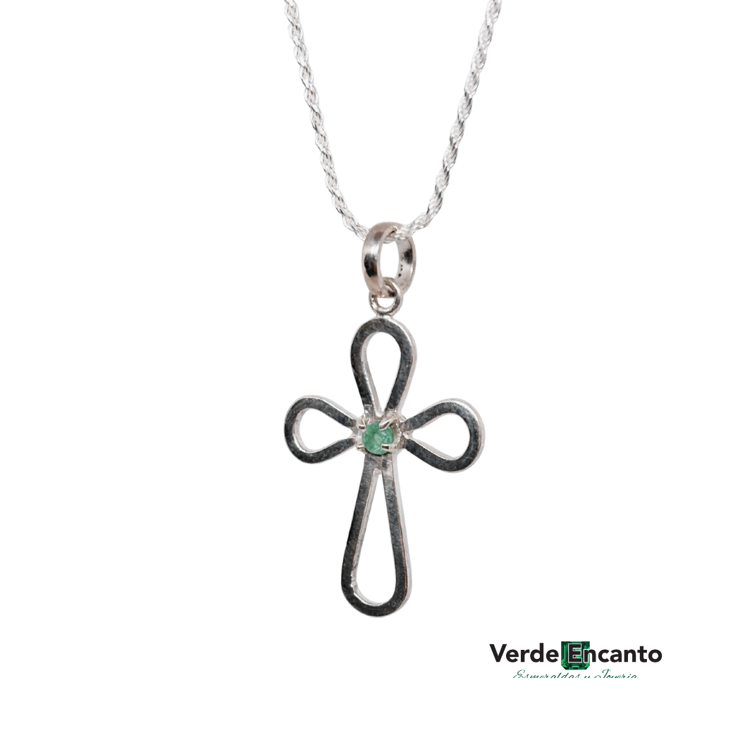 ✨Dije Cruz Lazo con Esmeralda Natural – Plata 925